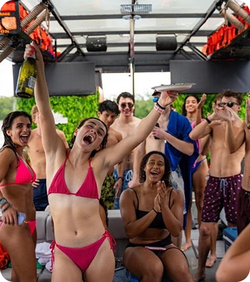 Whether you’re planning a birthday party, bachelorette boat party, family outing, Miami sunset cruise, or private boat rental in Miami, this boho-chic vessel delivers the perfect mix of elegance, fun, and unforgettable views.