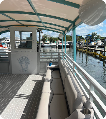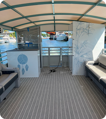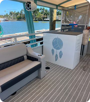 Choose this Miami boat rental for a serene experience on the water—featuring calming blue décor, tropical plants, and peaceful Buddha touches. Ideal for wellness retreats, bachelorette parties, and relaxing Miami cruises.
